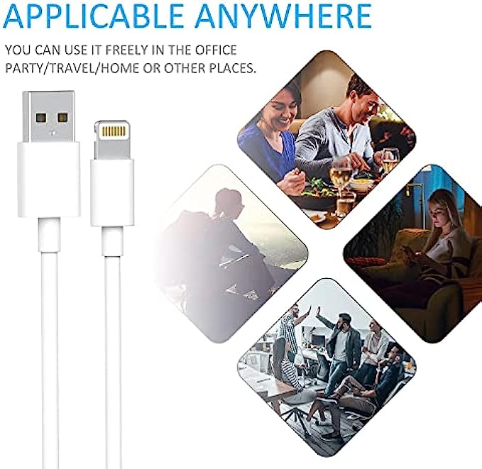 • 【Enough Long Cable】High quality iphone cable Sturdy enough to bear 12000+ bending and repeated unplugging and storage, ensure 100% charge and sync your devices with high speed. Tangle-free 3 Feet length is convenient for usage while charging and sync at home/office/travel in bed, hotel rooms, and more.