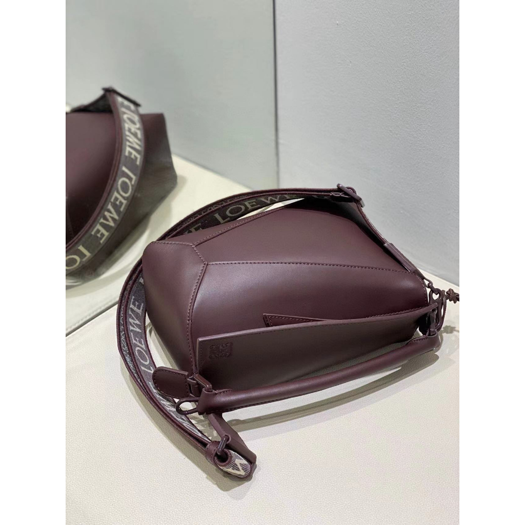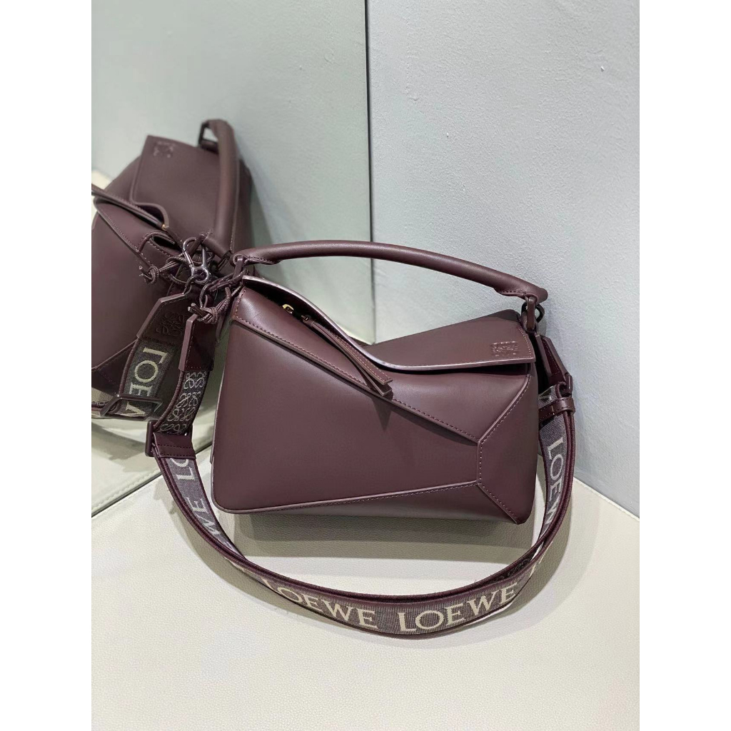 7.5 Best quality single color glaze Puzzleee geometric bag made of satin cowhide material, handbag. Sling bag size: 24 * 10.5 * 16.5cm
