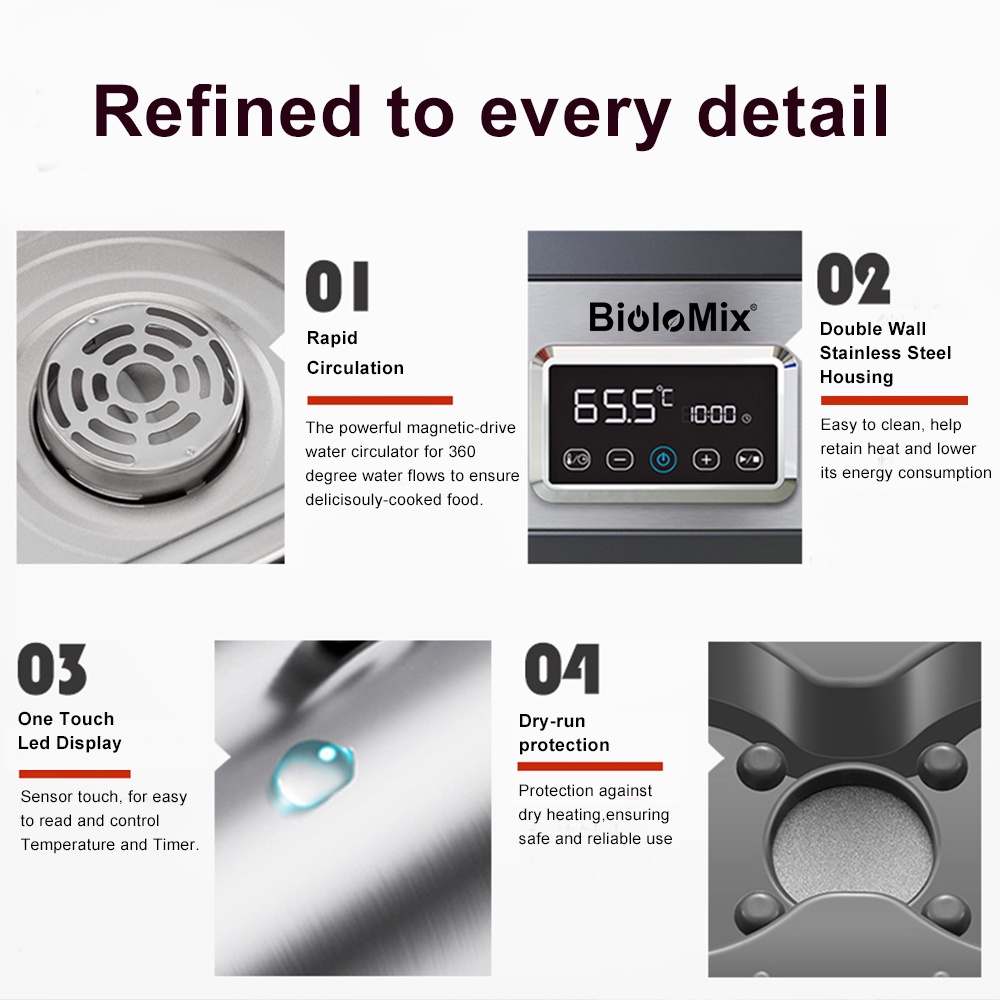 BioloMix 6th Generation Sous Vide Oven Pro Stainless Steel 8L Pot Accurate Temperature Touch Control Water Circulator Bath Cooker