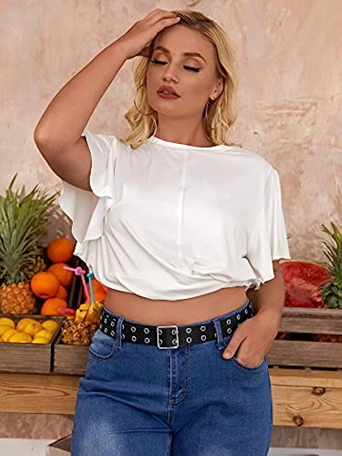 • PU leather belt studded double metal eyelet, stylish but not exaggerated, Decorative jean belt for women men in casual daily dress, party, club, skateboarding, dancing.