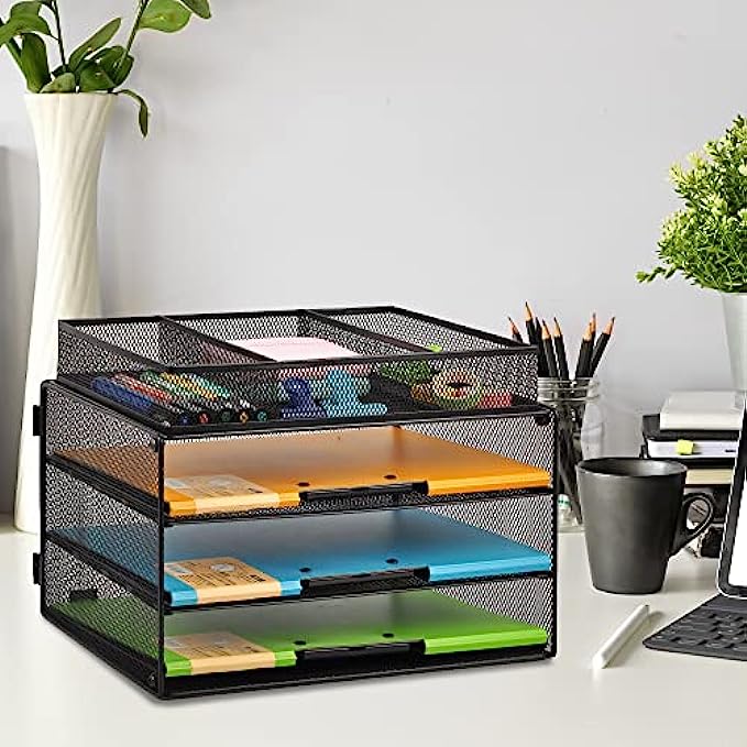 SPACE-SAVING: Help you save more of your desk space, everything now at a glance no more clutter, also good fits as a classroom paper organizer. Color: Black.
