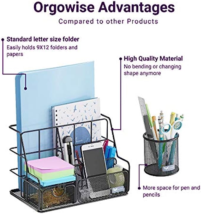 ? If you’re looking for a mens desk organizer, or neutral colors then the Orgowise Black Desk Organizer is for you. And for office supplies for women, teacher, teen girls and creative types, we also have it as a Desk Organizer Rose Gold Set. Choose what matches your aesthetic desk decor as workspace organizers, and order now!