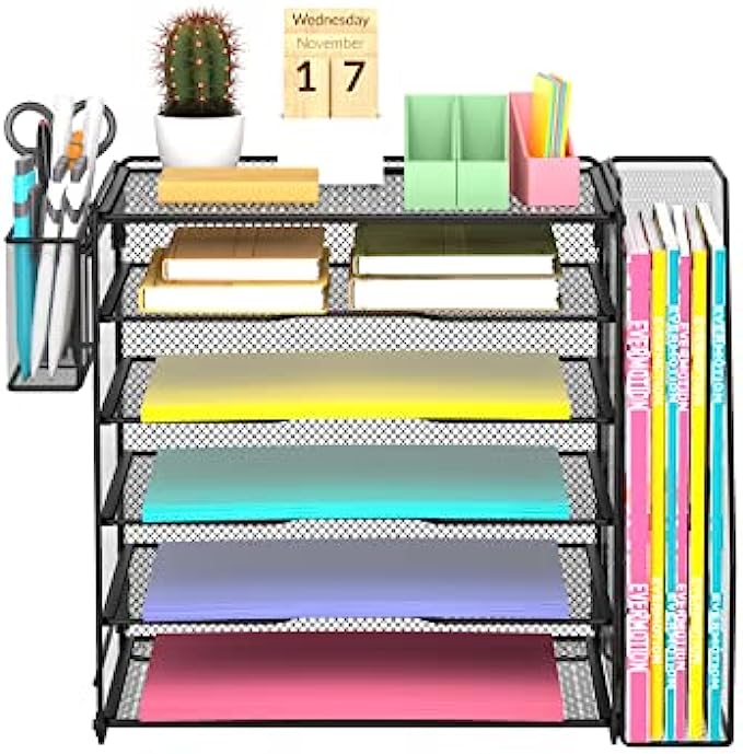 Multiple Use Desk Organizer: Can hold all your printer paper, documents, file folders, mail forms and other paper letters. Extra vertical file sorters can stand your books and magazines,pen holders can storage your other desk accessories, all-in-one desk organizer.