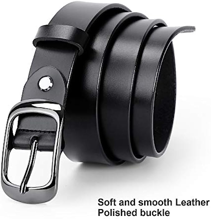 WERFORU Women Black Leather Belt Plus Size Polished Buckle for Jeans Pants