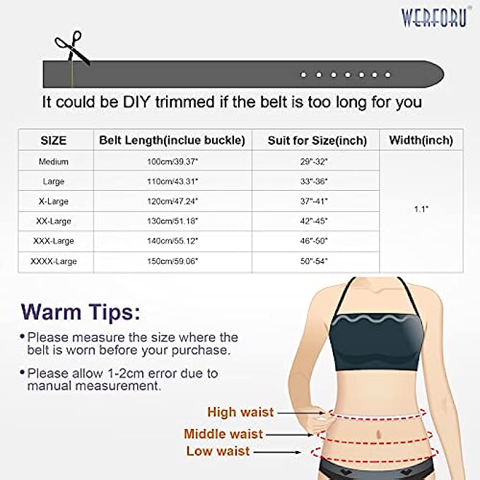 • Plus Size --- Perfect for women waist size from 29" to 54". This lady's belt is mainly designed for plus size, we determine the size based on the waist size of many women. Our aim is to bring convenience to plus size lady jeans, but also make them fashionable and classic.