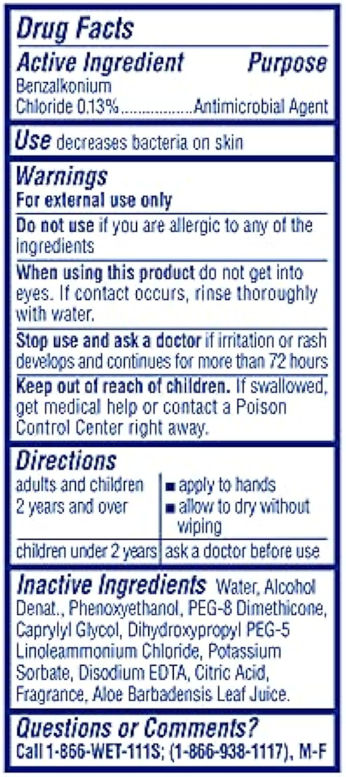 • ALOE FORMULA that won't dry or irritate your hands like hand sanitizers can