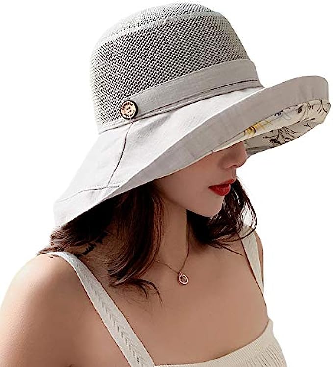 Women Mesh Sun Hats Summer Beach UV Protection UPF Packable Wide Brim Chin Strap