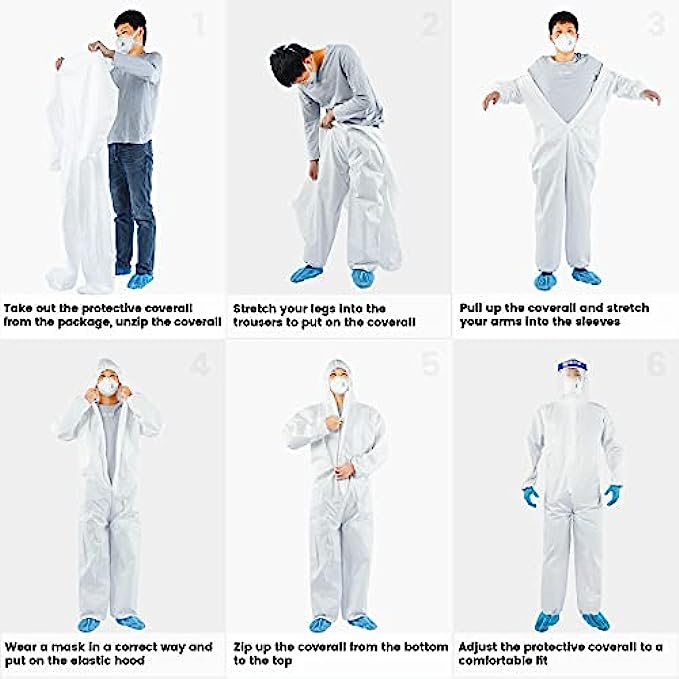 MULTIPLE APPLICATION: These unisex disposable garments are ideally suited for use in industrial, electronic and other environments. This coverall clothing can be also used for such activities as manufacturing, mold remediation, cleaning, plumbing, construction, painting.